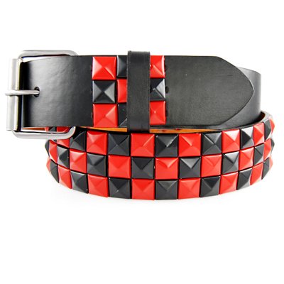 - This leather belt features punk rock star rainbow checker board pattern studs with removable roller